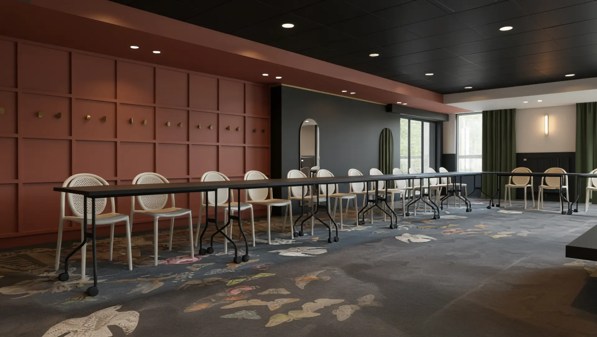 À l’Hôtel 2M, notre salle de séminaire spacieuse et lumineuse de 140 m2 peut accueillir confortablement jusqu’à 60 personnes selon la configuration. Avec sa décoration contemporaine, un service personnalisé, notre établissement est le lieu idéal pour accueillir vos séminaires et conférences, formations et team building, réunions familiales ou autres occasions de se réunir. Pour vos évènements professionnels ou privés, notre salle est équipée avec :